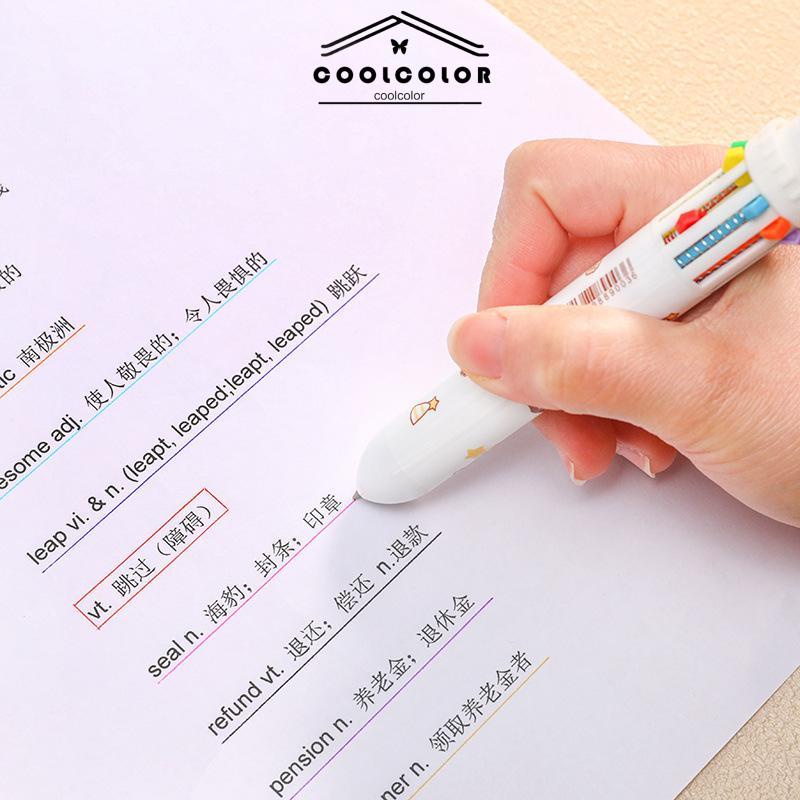 Detail COD❤️1pc Pulpen Mekanik 10 Warna Warni Rectractable Pen Color Motif Kartun Lucu Bear Grid Kotak Aesthetic Bolpoin Alat Tulis Sekolah- cl