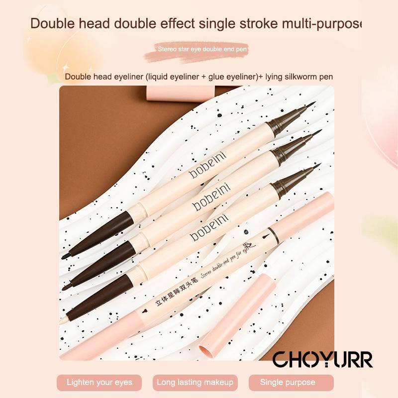 Pena Cairan Eyeliner Kepala Ganda Tiga Dimensi Pena Ulat Sutra Tahan Air Tahan Lama Tanpa Noda