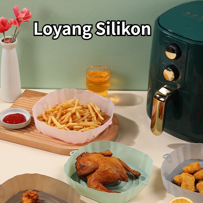 Detail 【COD】 20cm Loyang Air Fryer Bahan Silikon Multifungsi Bahan Silikon Anti Lengket Dapur