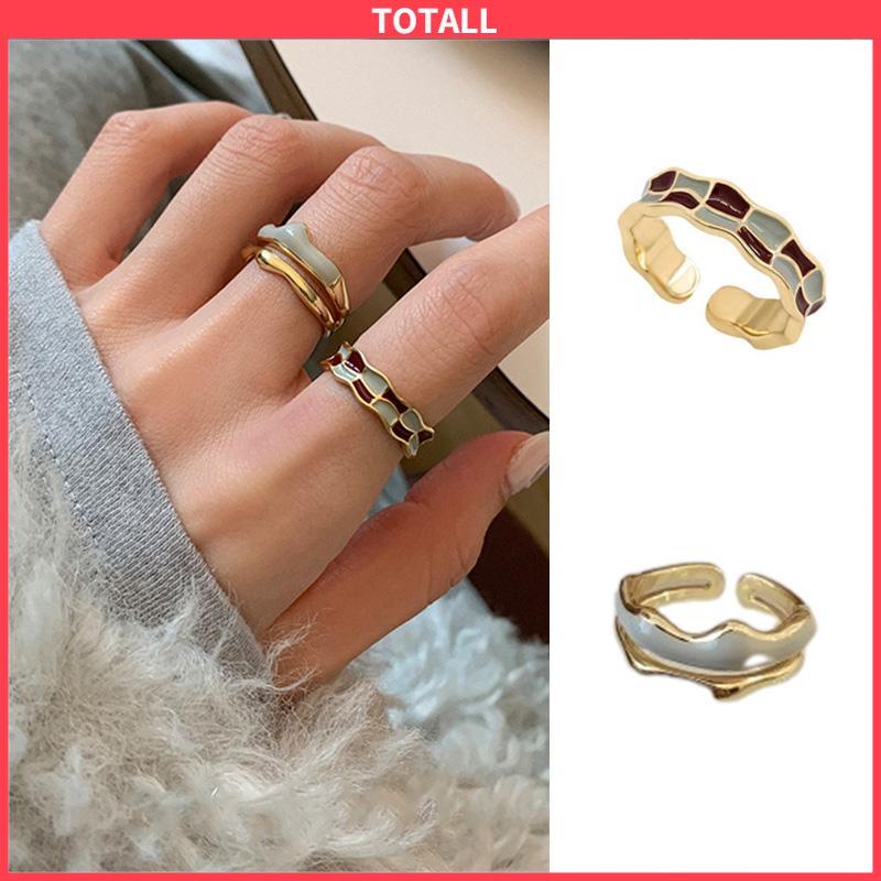 ✨Halo kaka Selamat Datang Ditoko Kami✨ -------------------------------------------------- --- Bahasa Perancis Vintage Enamel Papan Catur Kotak-kotak Cincin Wanita Desain Rasa Terbuka Cincin Jari Telunjuk