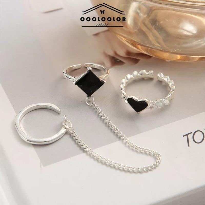 Detail COD❤️3PCS Cincin RetroDesain Ceruk Temperamen Mewah Buka Dapat Disesuaikan Cincin Jari Telunjuk- cl