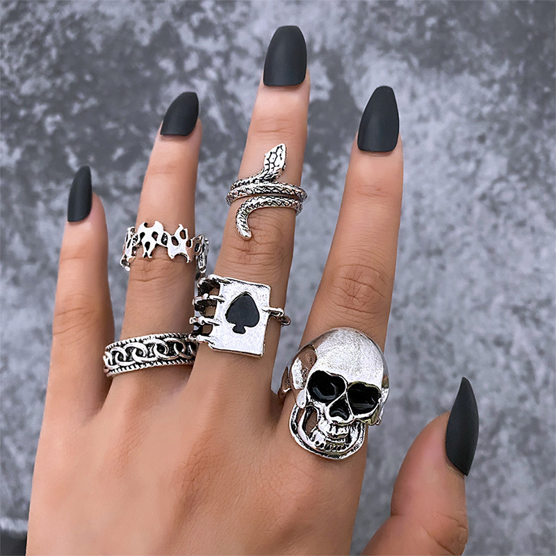 Detail COD❤️6PCS/Set Cincin Unisex Punk Membesar-besarkan Badut Poker Cakar Hantu Tengkorak Perhiasan Bulat Nomor 8-A.one