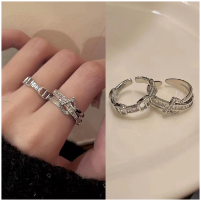 Detail 【COD】925 Perak glitter Berlian fashion Huruf D Cincin Terbuka Aksesoris Wanita Korea