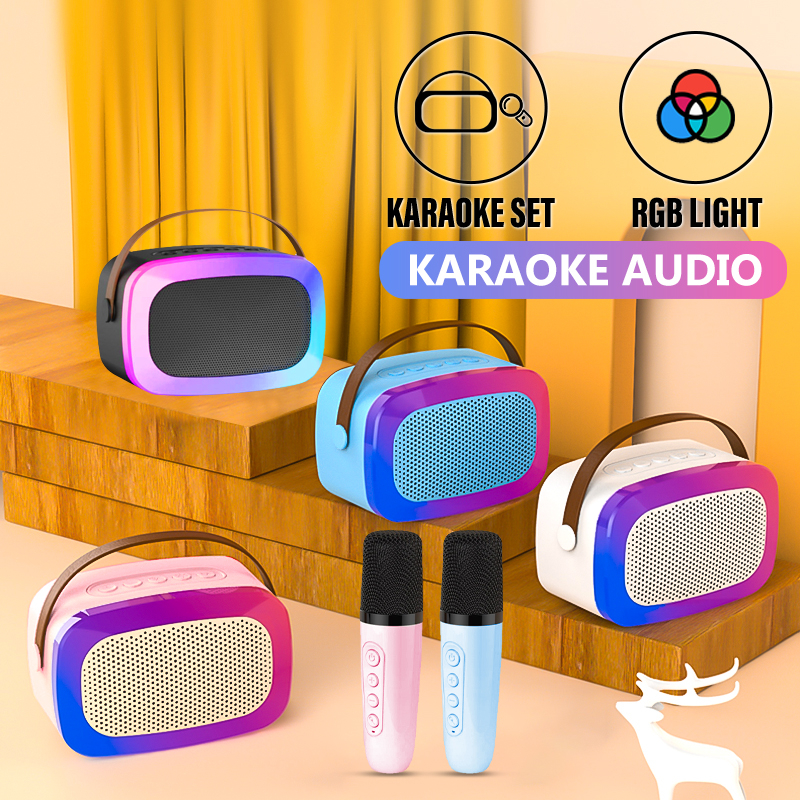 Handphone & Aksesoris > Audio Handphone > Speaker > 【COD】AFS Portable Microphone Karaoke Speaker Bluetooth RGB Hi-Fi Sounds Portable Wireless Karaoke - S32