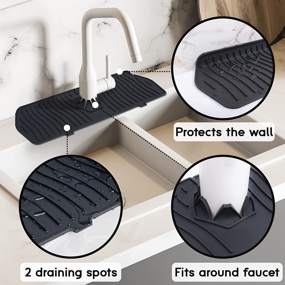✅Spesifikasi: Nama: bantalan penyerap faucet Bahan: Silikon Warna: Abu-abu, Oranye, Hitam Ukuran: sekitar 14.6*5.6 inci/37*14 cm