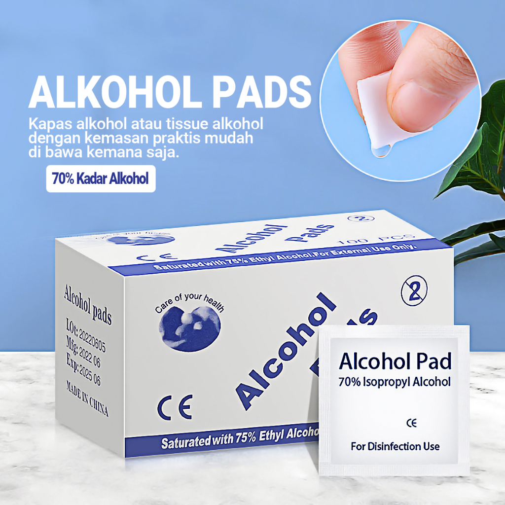 Alkohol Swab / Kapas Alkohol / Tissue Alkohol 75% Kapas atau tisu alkohol antiseptik yang digunakan untuk membersihkan luka, barang kaca dan kulit tubuh