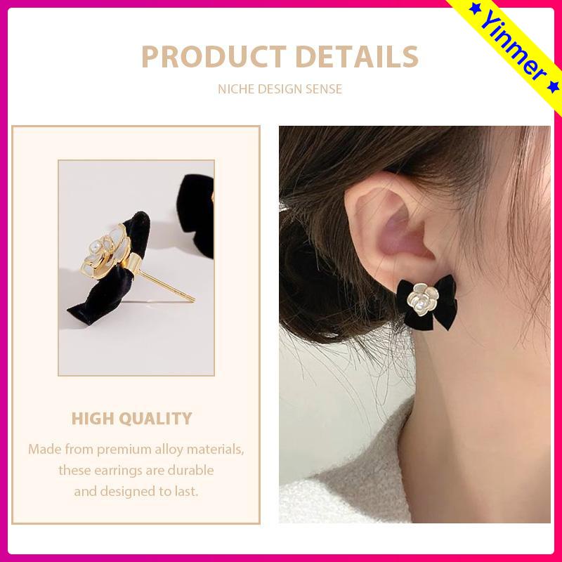 Anting-anting anting-anting busur gaya selebritas vintage Prancis mendesain anting-anting premium
