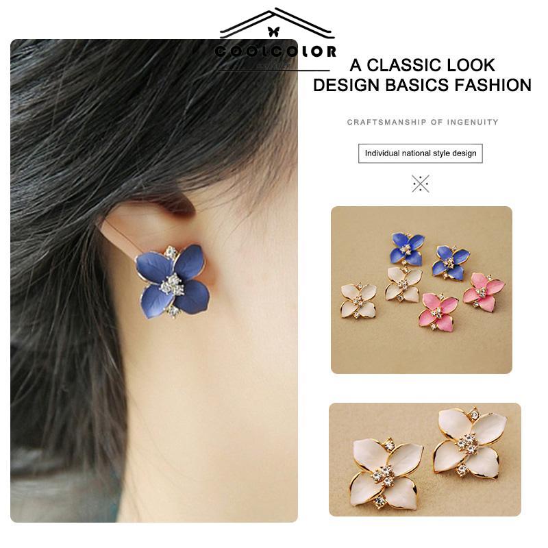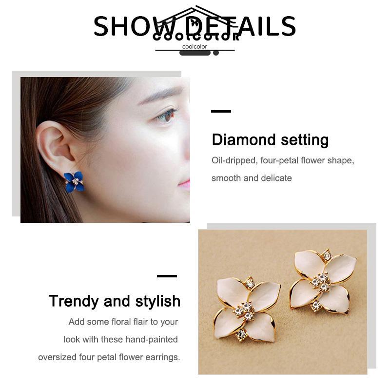 ⭐⭐100% Satisfaction and Premium Quality! 📣📣 Follow toko kami ya, dapatkan produk terupdate kami dan macam voucher toko kami 🚚🚚Pesanan Anda akan dikirim dalam waktu 1-2 hari setelah konfirmasi transaksi. 📞📞Silakan hubungi layanan pelanggan terlebih dahulu, jika Anda memiliki masalah.Minyak Inlay Berlian Meneteskan Anting Bunga Empat Kelopak Perhiasan Halus Halus