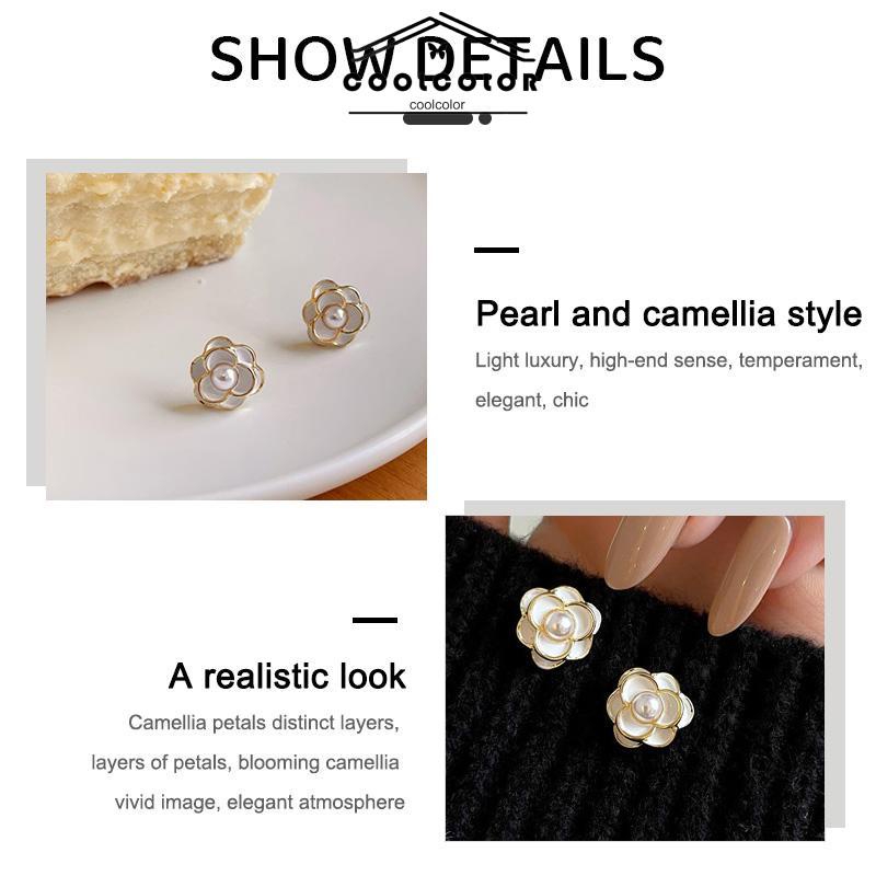 Detail COD❤️Anting Camellia Mutiara Korea Fashion Sederhana Gaya Aksesori Wanita- cl