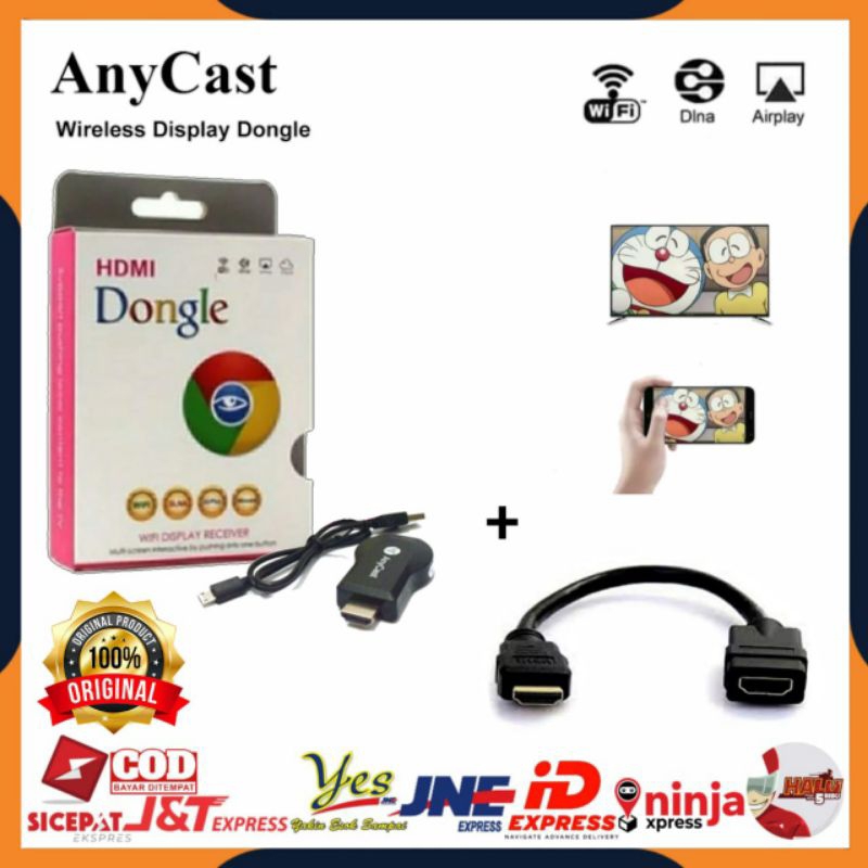 Detail [COD] ANYCAST DONGLE WIRELESS + KABEL SAMBUNGAN HDTV / ALAT PENYAMBUNG HP KE TV / ANYCASH DONGEL MIRACAST WIFI / PENGHUBUNG HP KE TV LED