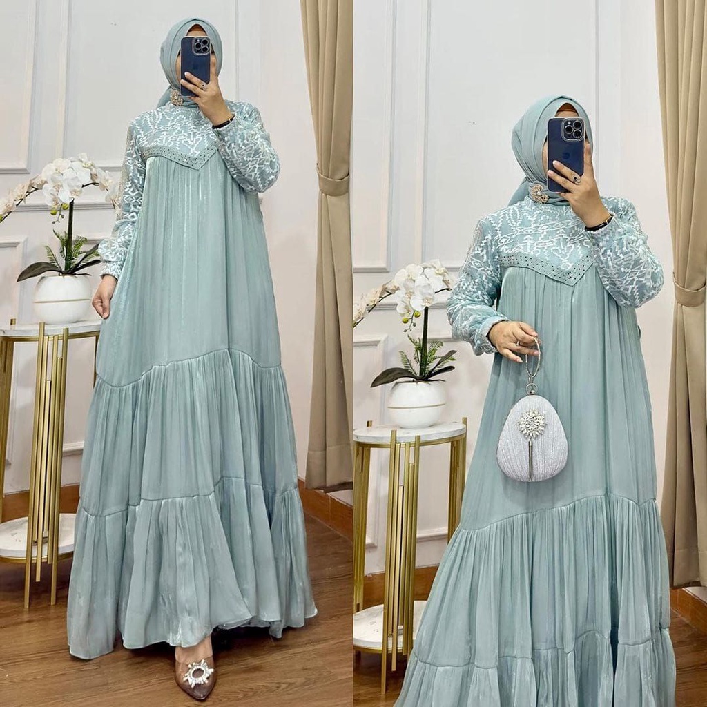 Detail COD - Asvia Dubbay Dress Maxy Wanita Muslim Matt Ceruty Babydoll Apk Brukat Premium OOTD Gamis Pesta Kondangan