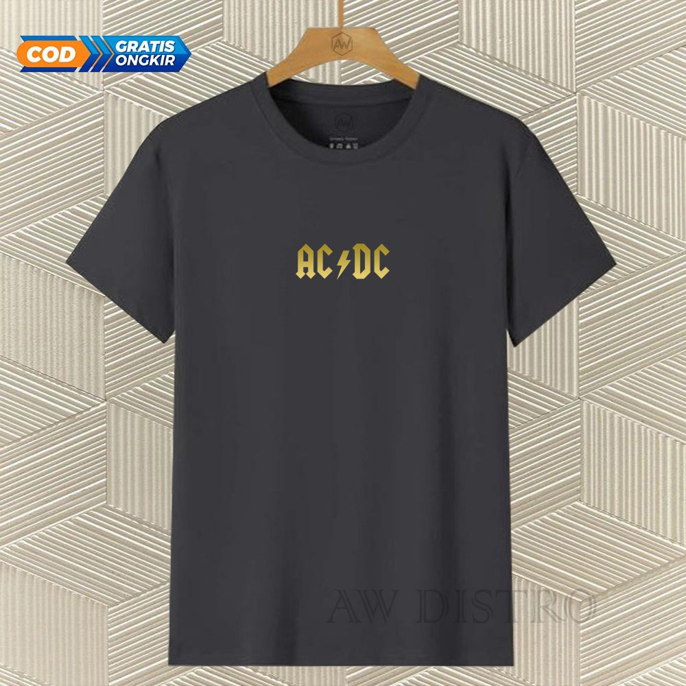 COD Baju Kaos Distro Acdc Text Gold Premium Quality Lengan Pendek