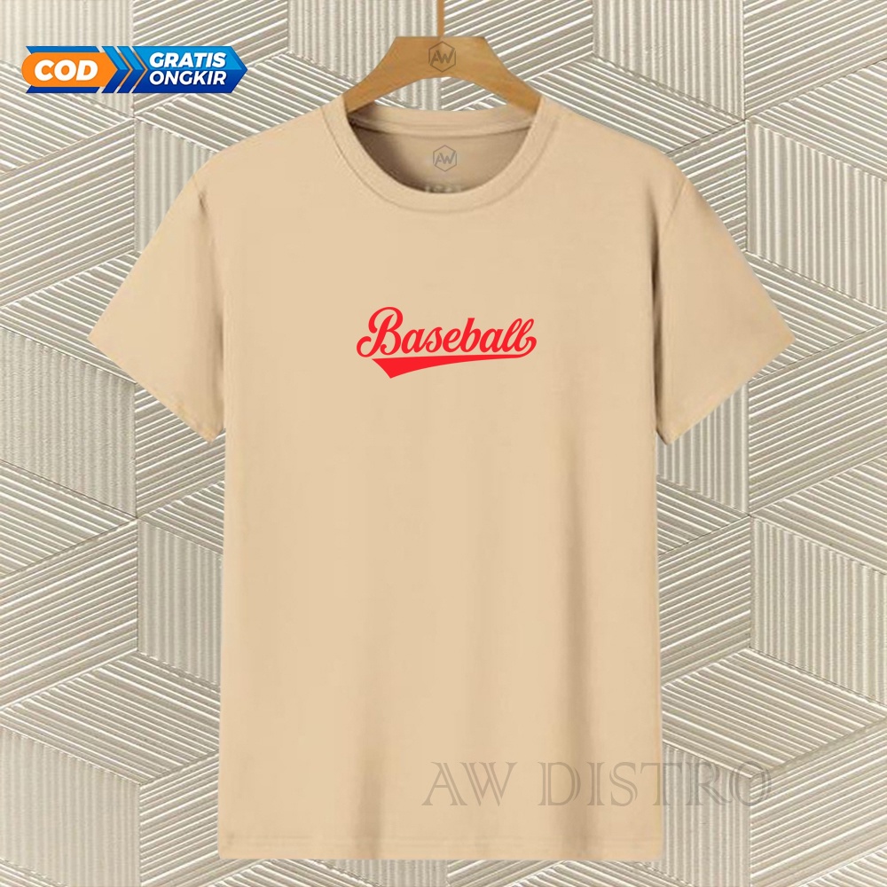 Pakaian Pria > Atasan > Kaos > COD Baju Kaos Distro BASEBALL Teks Merah Premium Quality Lengan Pendek