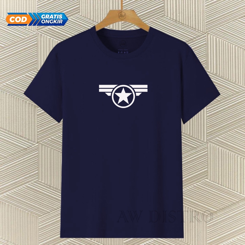 Detail COD Baju Kaos Distro Captain Text Putih Premium Quality Lengan Pendek