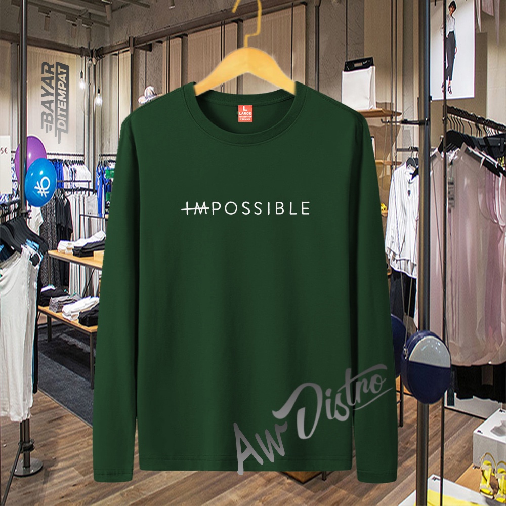 COD Baju Kaos Distro IM POSSIBLE Text Putih Premium Quality Lengan Panjang Kaos Tulisan Kaos Kata-Kata Kaos Sablon Big Size