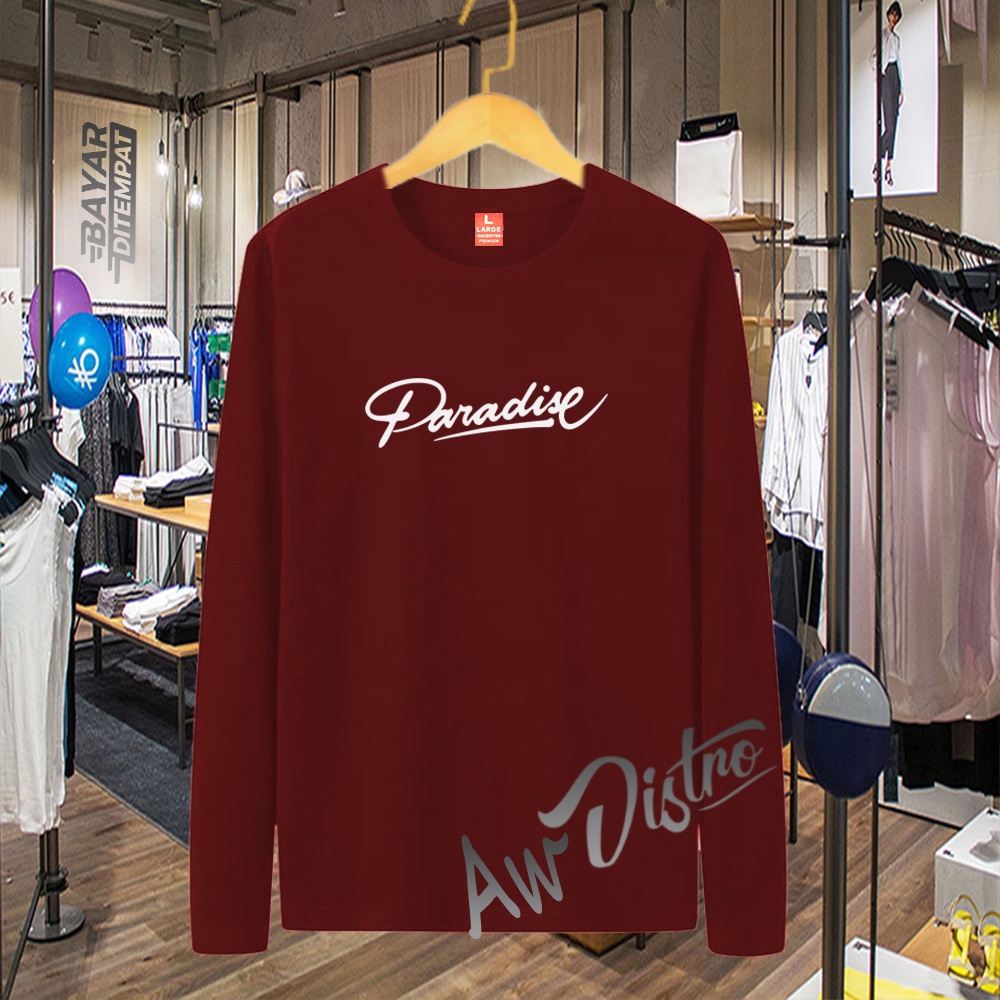 Detail COD Baju Kaos Distro PARADISE Teks Putih Premium Quality Lengan Panjang Kaos Tulisan Kaos Kata-Kata Kaos Sablon Big Size