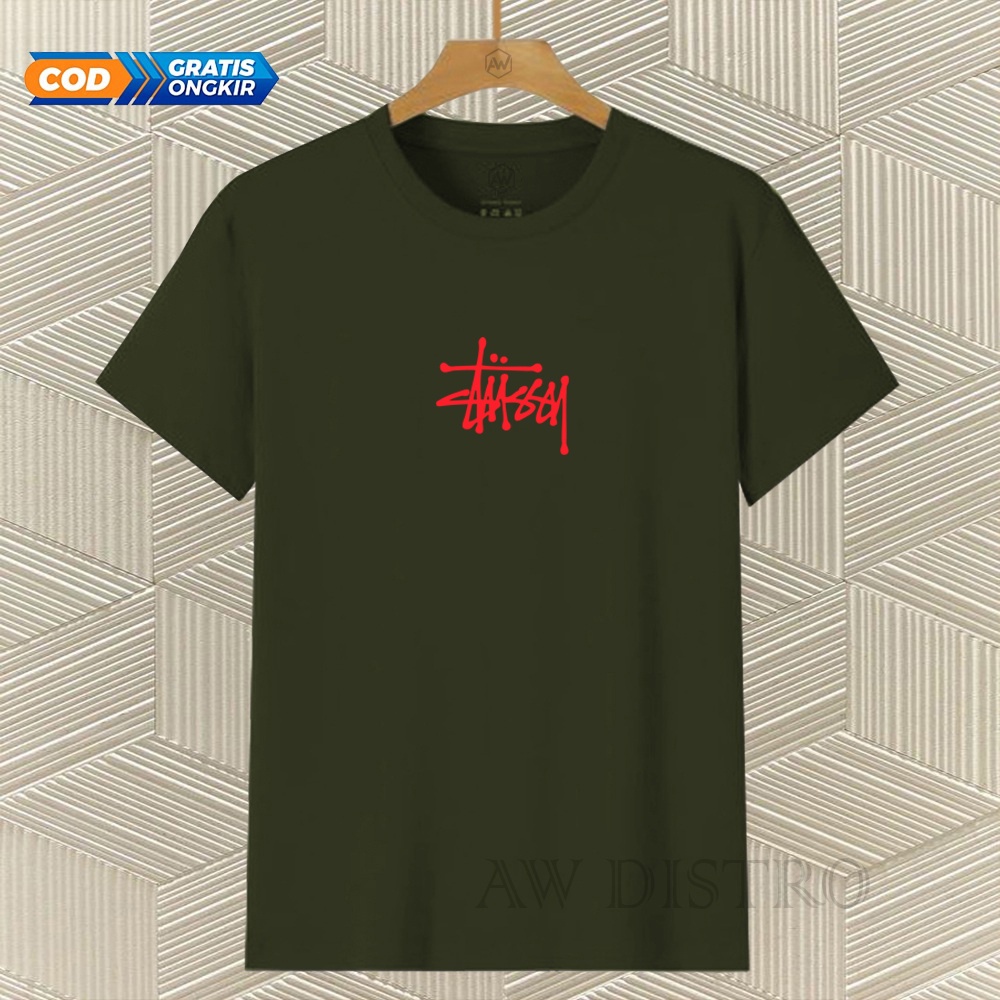 Pakaian Pria > Atasan > Kaos > COD Baju Kaos Distro Stussy Tex Merah Premium Quality Lengan Pendek