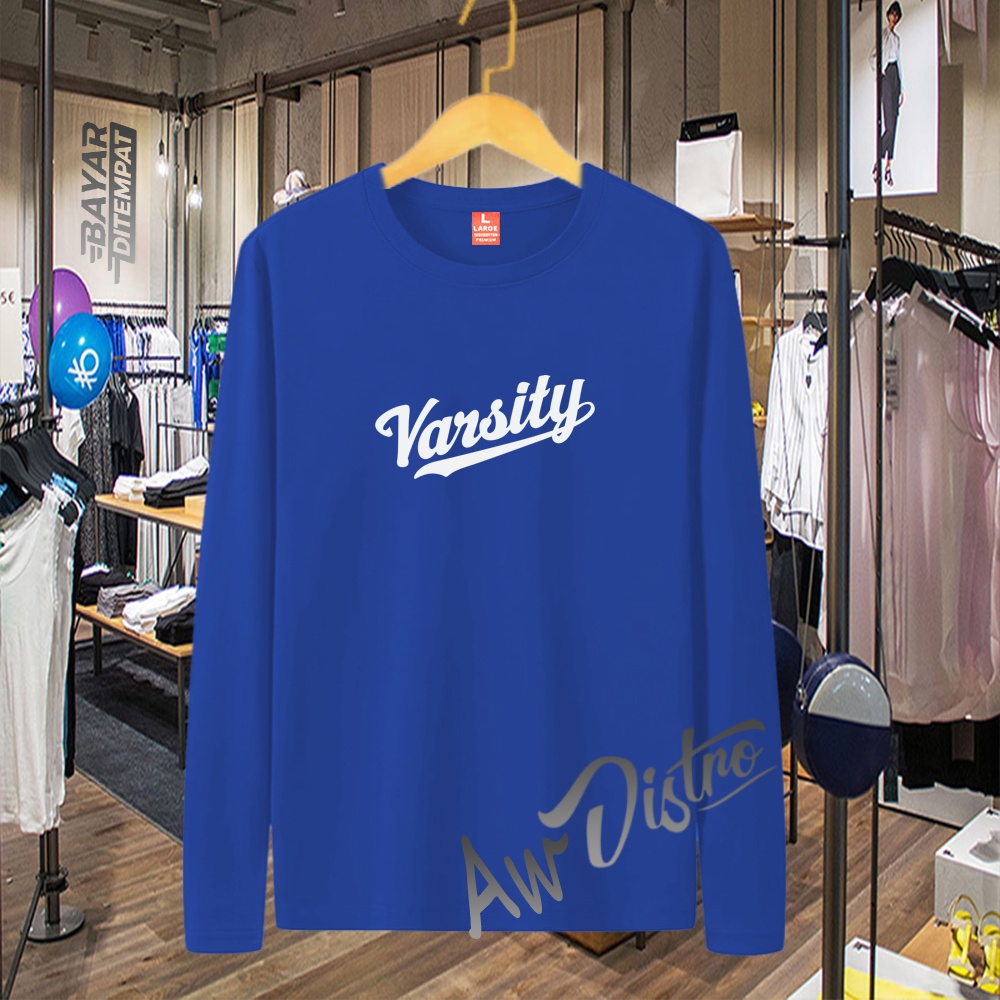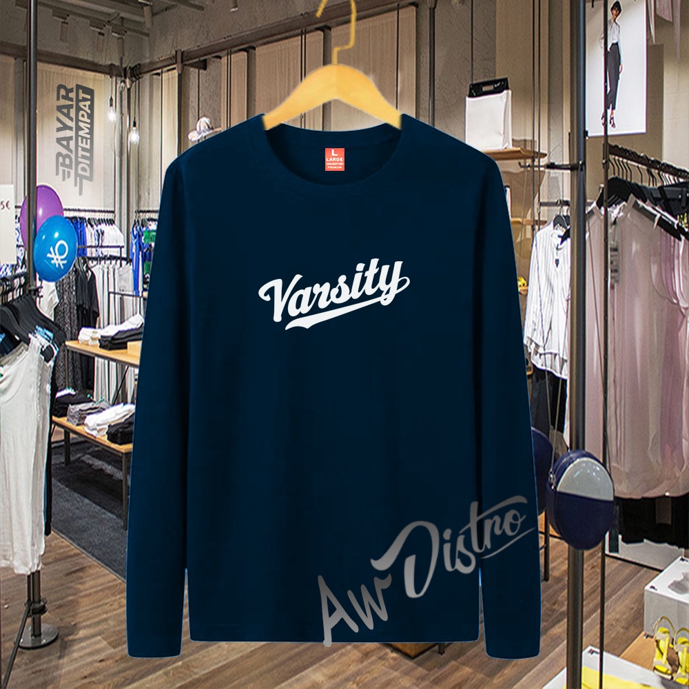 Detail COD Baju Kaos Distro VARSITY Teks Putih Premium Quality Lengan Panjang Kaos Tulisan Kaos Kata-Kata Kaos Sablon Big Size