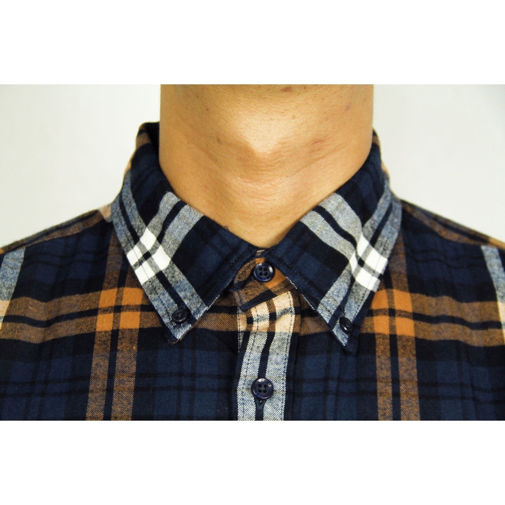 Baju Kemeja Cole Code 18 Casual Lengan Panjang Reguler Fit Biru Navy Tua Pria Motif Kotak-kotak