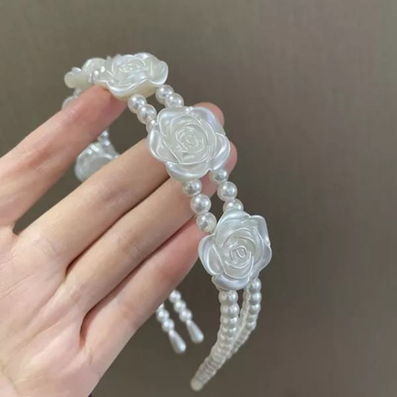 Detail COD Bando Mutiara Viral Mawar Double Cantik Korean Style