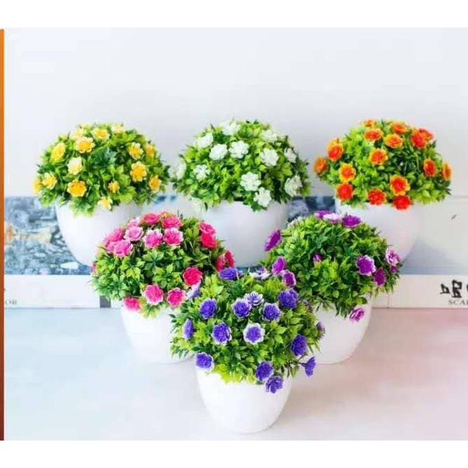 Bonsai mawar bulat artificial SEPAKET BUNGA + POT" * bunga mawar bulat ukuran 14x15cm diameter atas pot 9cm geser foto ya utk lebih jelasnya bunga dan vas bahan plastik
