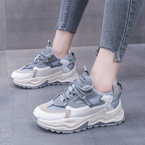 Detail ✅COD [BBS] Sepatu Sneakers Wanita Women Sport Shoes Grey Cream Taecyeon VT-03