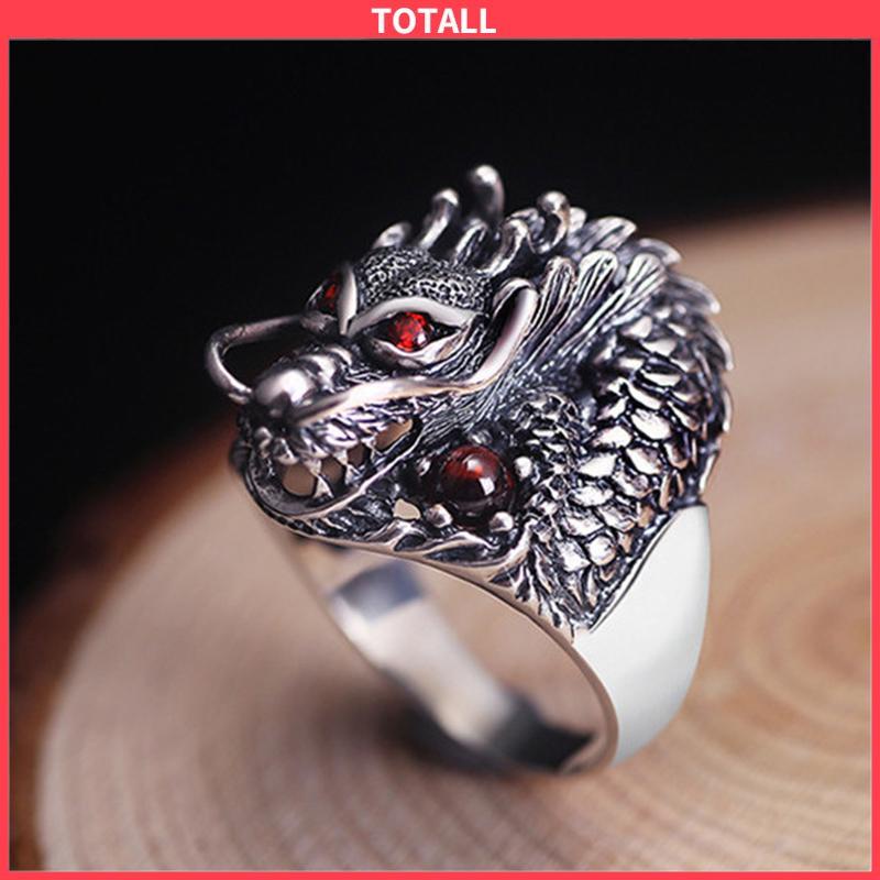 Detail COD Berlapis Perak Perhiasan Pribadi Kepala Naga Bertatahkan Cincin Zirkonia Vintage Cincin Naga-Totall