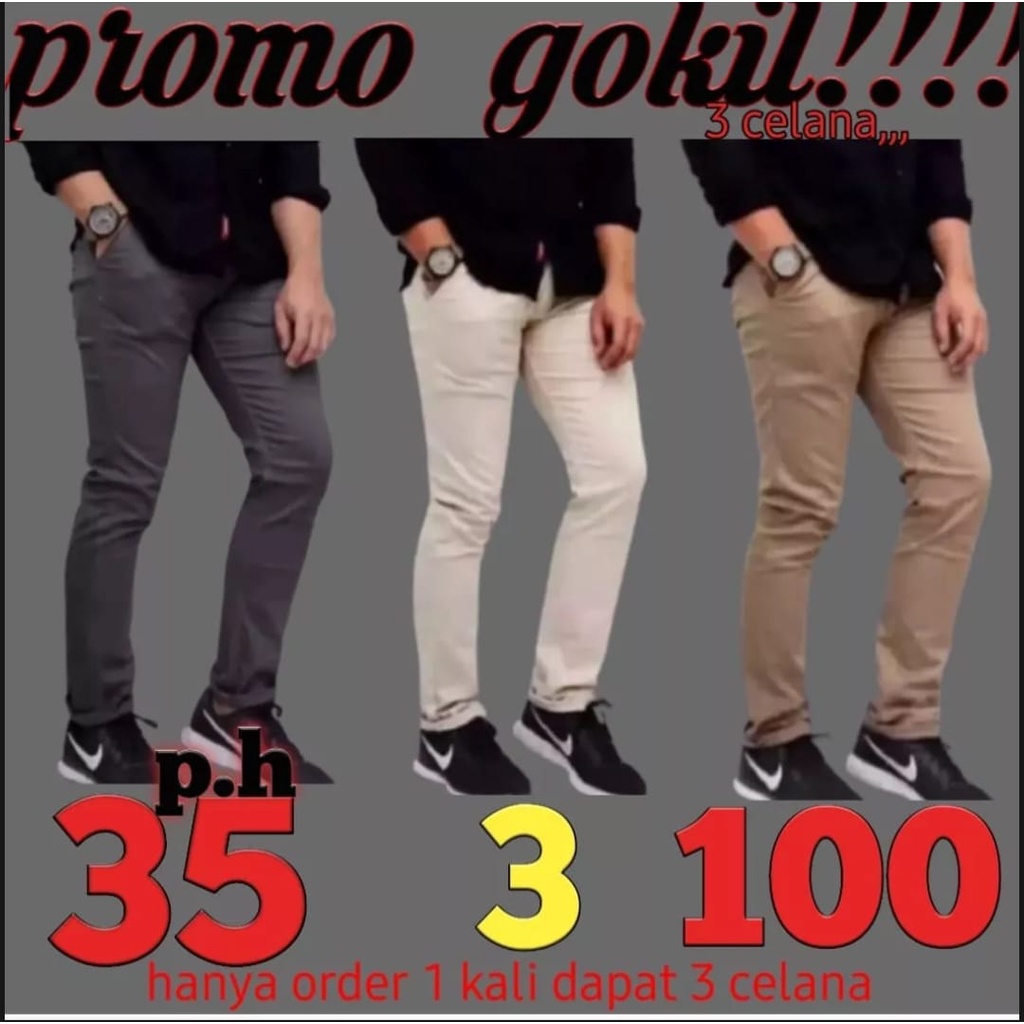 Detail COD ( BISA BAYAR DITEMPAT) CELANA CHINO PRIA BELI 1 DAPAT 3 PCS