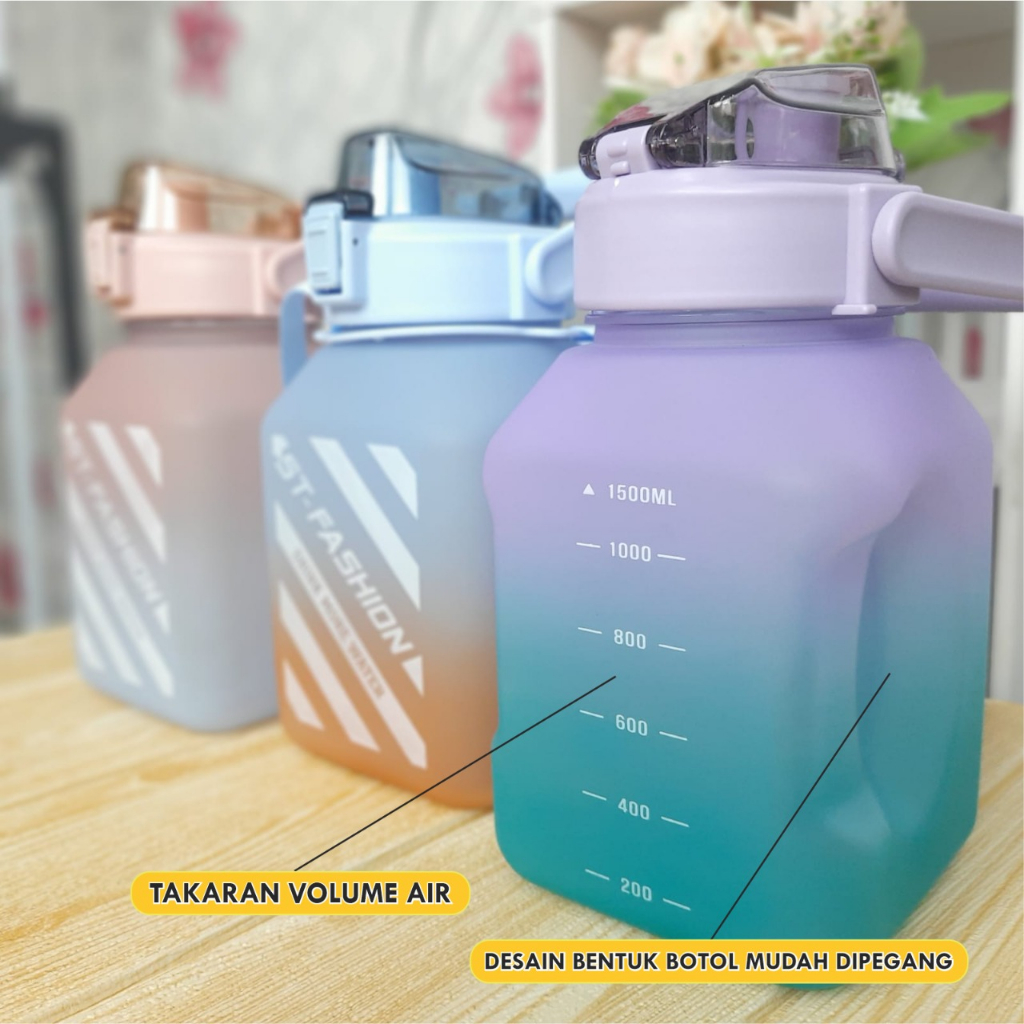 Detail Barnik88 Botol Motivasi Gemoy Kotak Gradasi Viral Big Capacity 1.3L Free Sticker 2D + Tali Anti Pecah