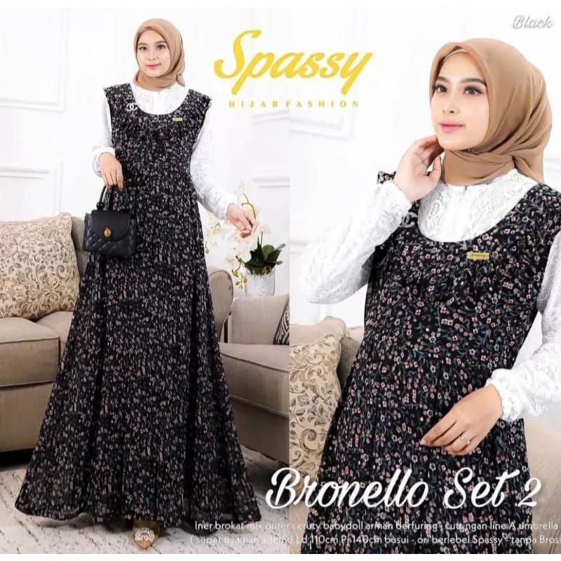 Detail [COD] Bronello set 2 | gamis ceruty kombinasi burkat Malika GAMIS BEST SELLER