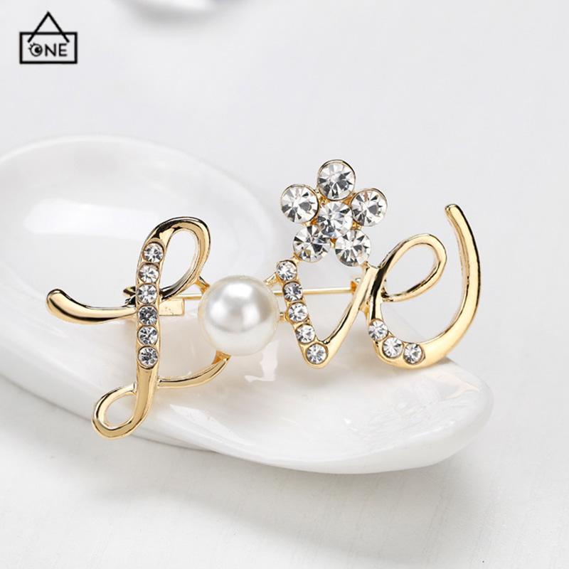 Detail COD❤️Bunga mutiara berlian brooch surat cinta-A.one