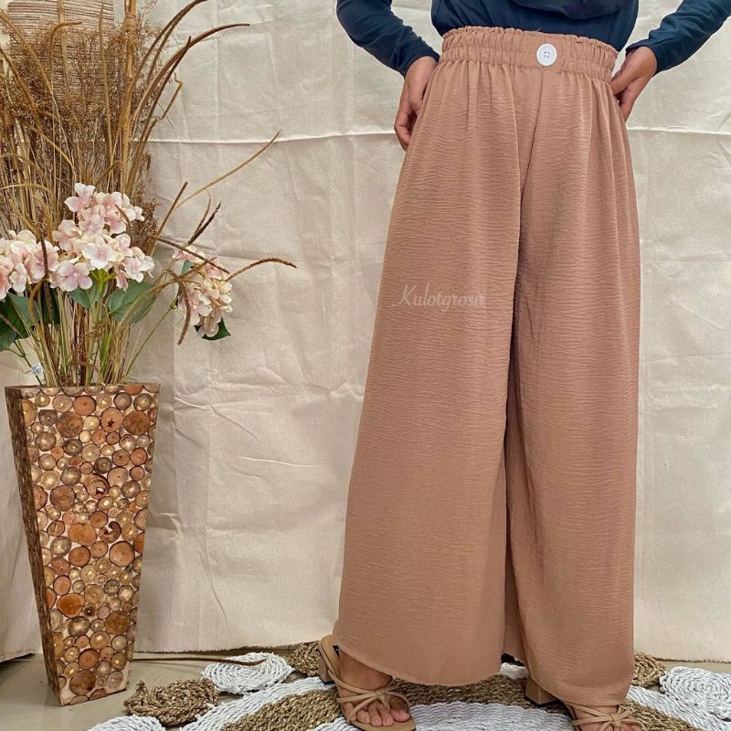 Detail (COD) Celana Kulot Crinkle Airflow Highwaist Wanita Loose Cullote Pant Jumbo Termurah Celana Kulot Bahan Crinkle Airflow Premium