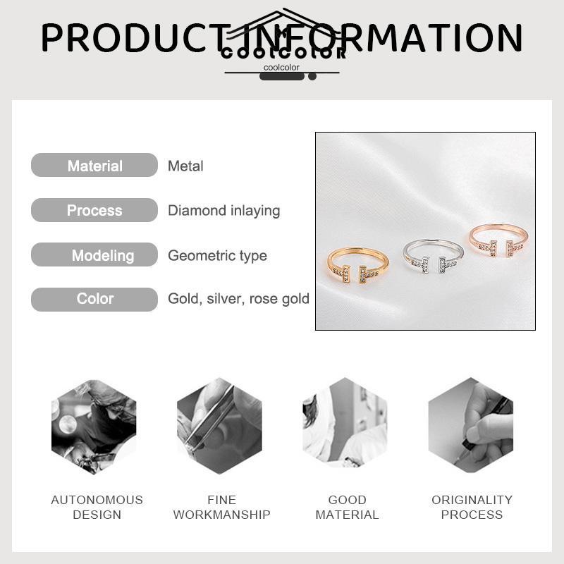 .Fitur Trendi, Bentuk T Ganda, Berlian Penuh, Dapat Disesuaikan, Pembukaan, Mode, Berkilau Gaya: Cincin ini klasik dan sangat elegan sehingga wanita dari segala usia dapat menikmatinya sepanjang hari setiap hari. Bahan: Dibuat dari logam perlindungan lingkungan berkualitas tinggi, berlapis perak / emas, bebas nikel dan timbal, hypoallergenic. Kesempatan: Produk ini cocok untuk banyak kesempatan seperti pesta, pernikahan, upacara, wisuda, kencan dan panggilan.