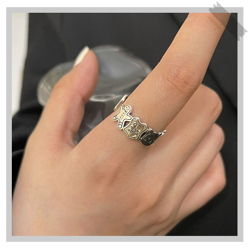 Aksesoris Fashion > Cincin > 【COD】Cincin Doodle Gingerbread Man Membagi Cincin Perempuan Pembukaan Adjustable Desain Graffiti Gingerbread Man Tidak Luntur