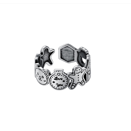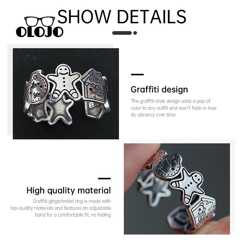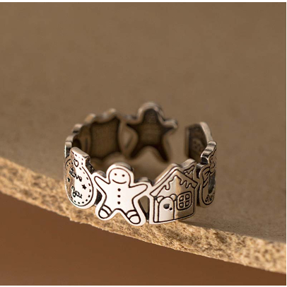 Cincin Gingerbread Grafiti Man Desain Dapat Disesuaikan Pembukaan Wanita Tanpa Cincin Memudar Tanpa Cincin Memudar