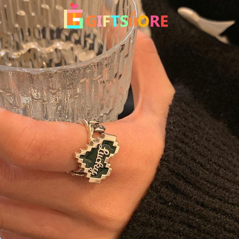 Detail ✨COD Cincin Huruf Jatuh Minyak Cinta Cinta Halus Berlapis Perak Perempuan Retro Elegan Cahaya Mewah Cincin Terbuka-GS