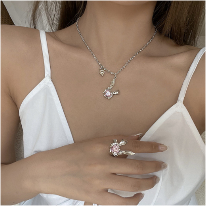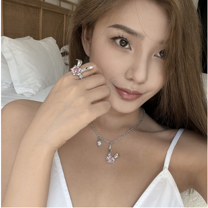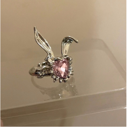 Aksesoris Fashion > Cincin > 【COD】Cincin Jari Adjustable Indah Berlian Imitasi Merah Muda Hati Indah Telinga Kelinci Wanita pretty rabbit zircon open ring
