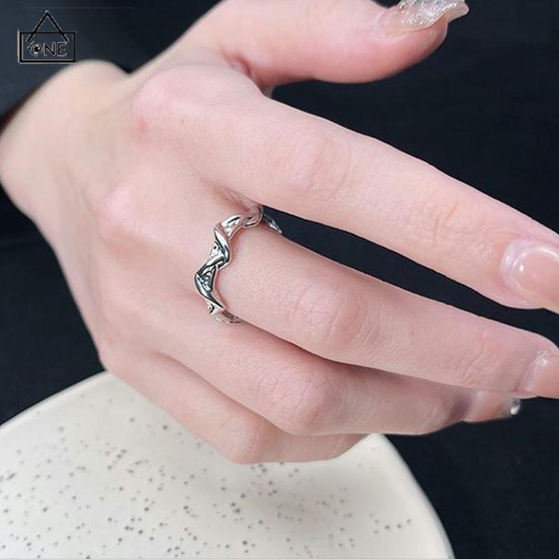 Detail COD❤️cincin Pembukaan bergelombang tidak teratur cincin polos desain niche cincin batu bulan yang modis dan indah-A.one