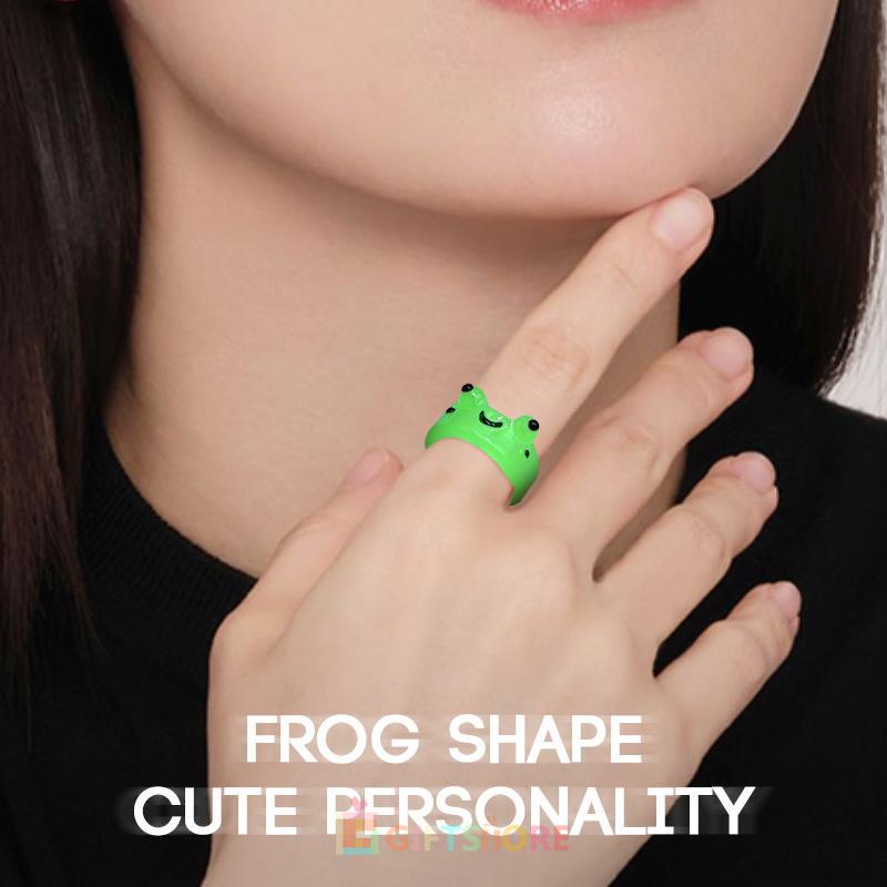 Detail ✨COD Cincin resin katak bercahaya Kartun binatang berwarna-warni Cincin jari yang lucu-GS