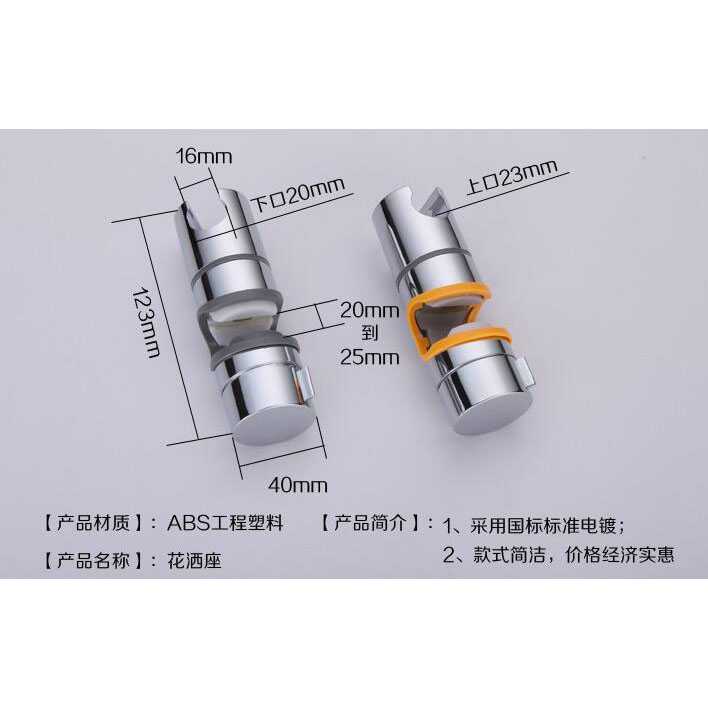 Spesifikasi Material ABS Dimensi Panjang: 123 mm Ukuran Clamp: 20 - 25 mm Ukuran Penahan Shower: 20 mm