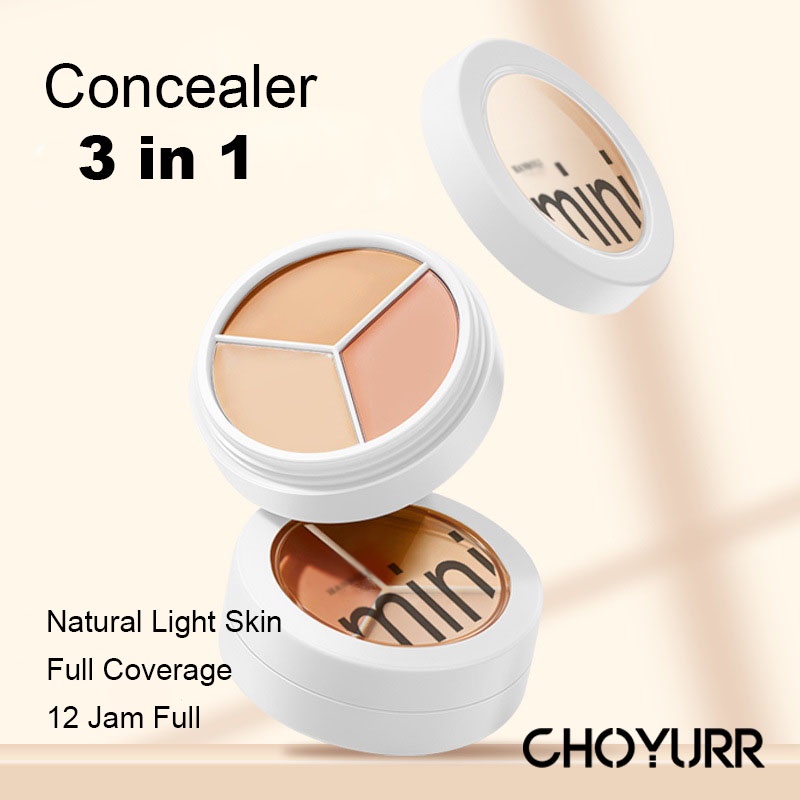 Perawatan & Kecantikan > Kosmetik Wajah > Concealer & Corrector > 【COD】Concealer 3 in 1 Contour Corrector Natural Light Skin Color 3 Warna Palet Concealer Krim Tahan Air 12 Jam Full Coverage Concealer Cakupan Kuat Pelembab-CH