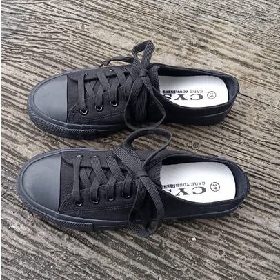 Detail COD CYS Sepatu Sneakers Wanita Pria Sepatu Kasual Kanvas Hitam Polos Sepatu Sekolah Cewek Cowok SPT 01