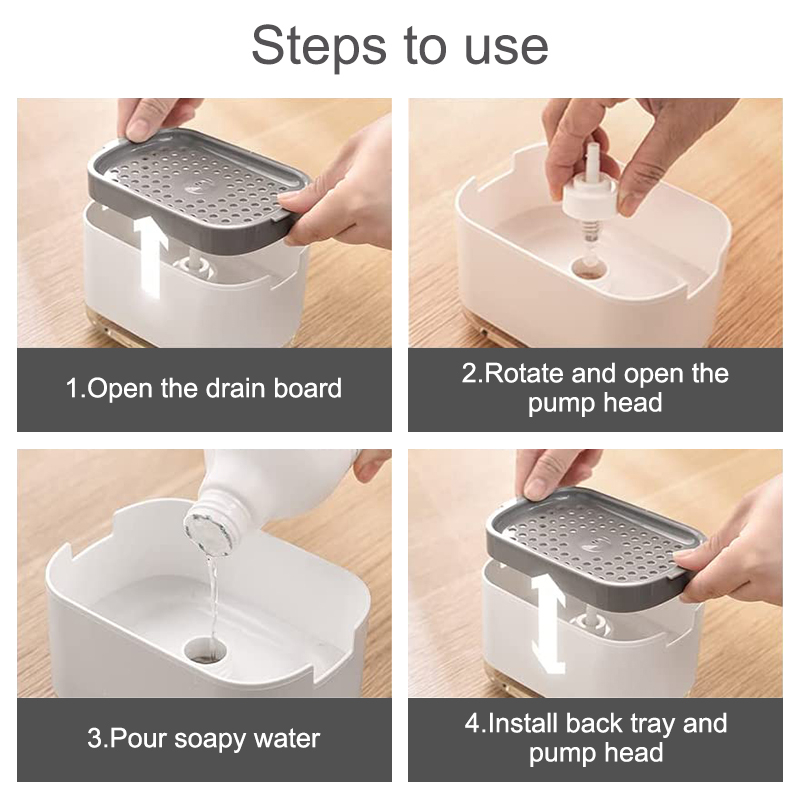 ✅Fitur: *FREE Sponge Warna Putih-Abu *Terdapat tempat untuk meletakkan Steel Wool (Sikat Besi) *Pump sabun dengan menekan bagian sponge *Hemat sabun *Mudah dibersihkan *Praktis dan mudah digunakan *Awet dan tahan lama *Bentuk astetik