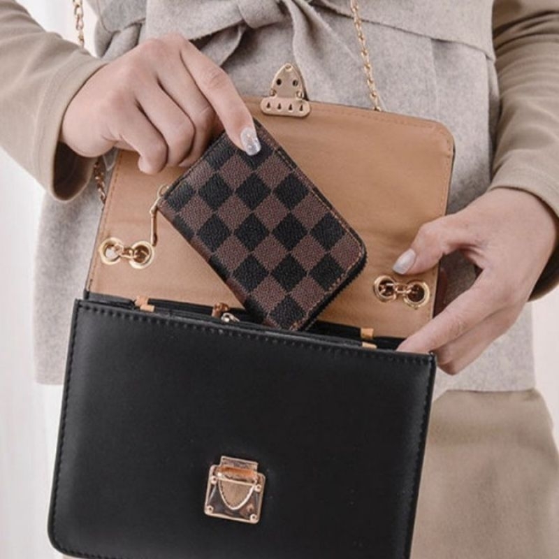Detail [COD] DOMPET KARTU FASHION ALA KOREA PREMIUM IMPORT BAHAN PU MOTIF KOTAK KOTAK BUNGA DOMPET ATM