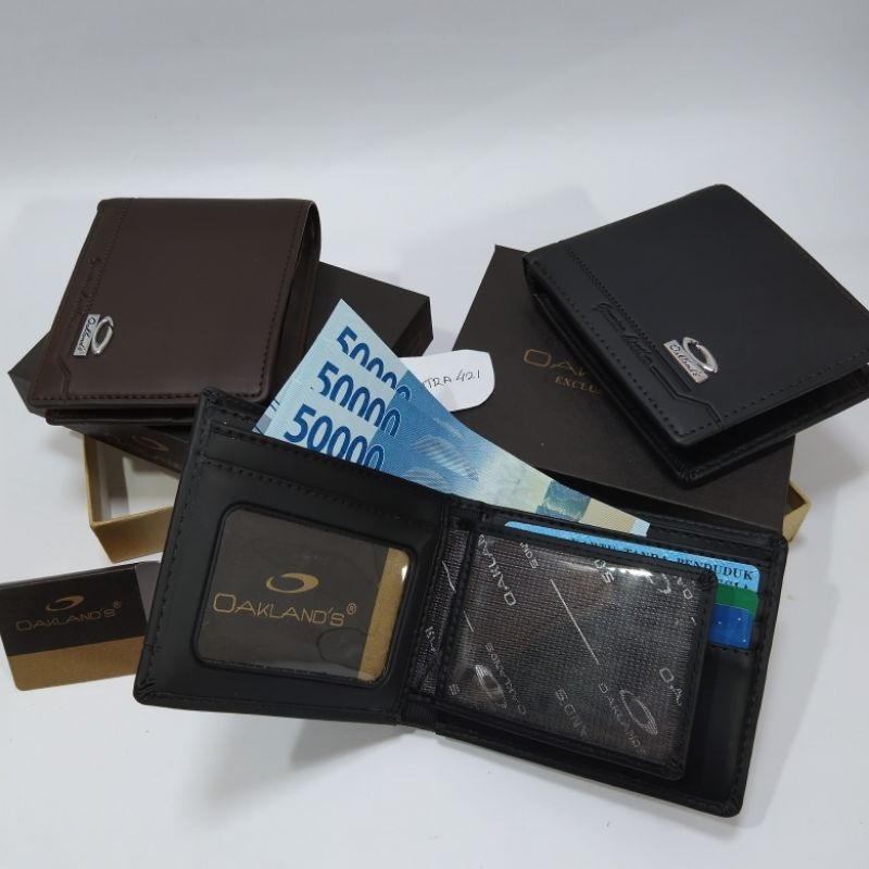 Merk : Oakland's Bahan : Kulit Ukuran : PxLxT 9x8,5x2 Cm warna : Hitam : Cokelat Tua Spesifikasi: 3 Ruang Slot Uang Tunai dengan Ruang Resleting. 3 Slot Kartu 2 Slot Foto Bagian Dalam Slot uang di lapis Saten bermerk produk.dan Hentek produk Foto Menggunakan Real Pick No edit tercantum Vidio,produk agar Lebih yakin dan ga nyesel Saat Co.