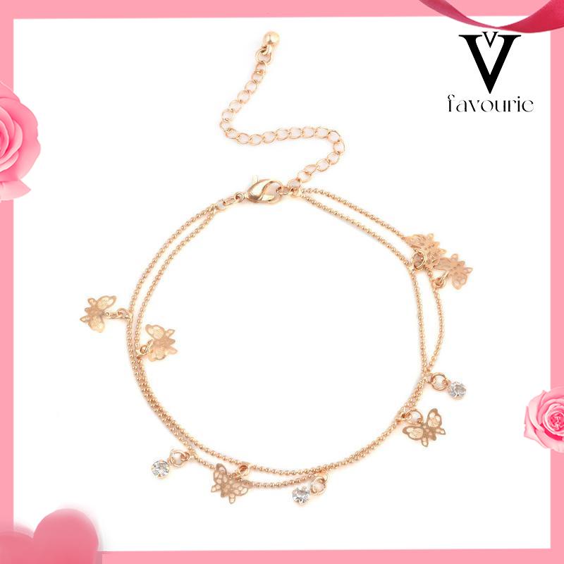 Detail [COD]Double Layer Hollow Butterfly Liontin Gelang Kaki Paduan Fashion Sepatu Wanita Yang Indah-FA