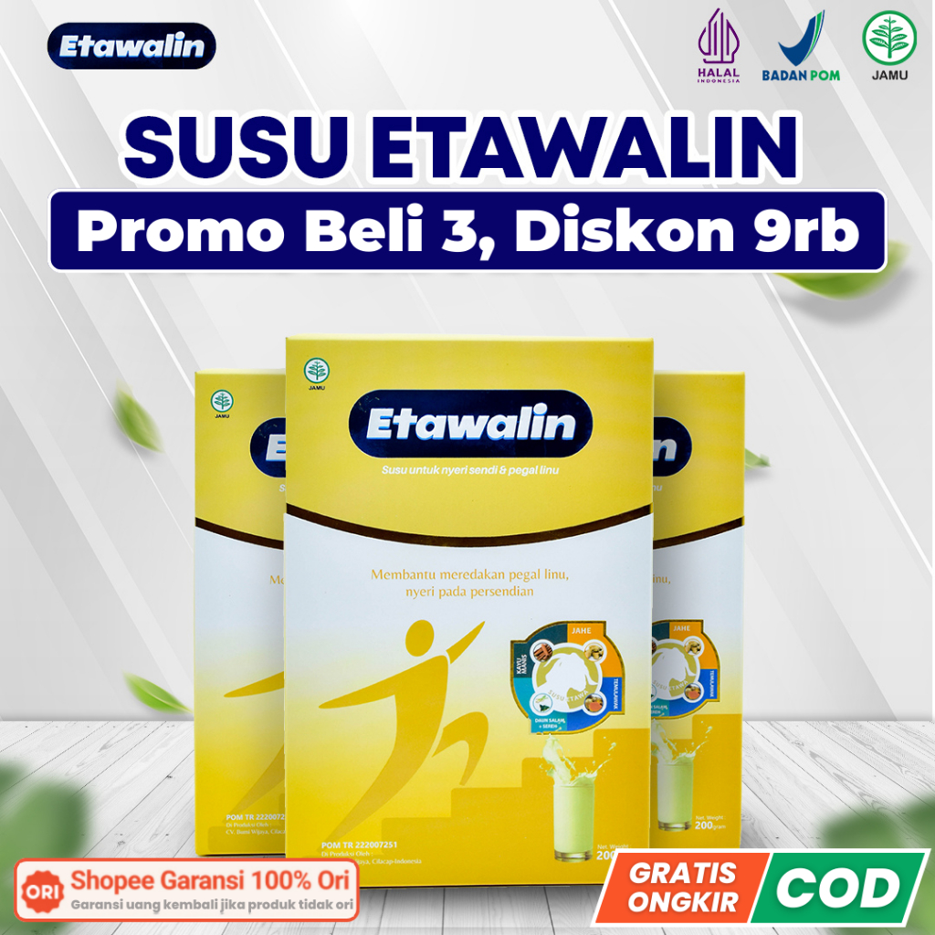 Jangan khawatir! Kami merekomendasikan Etawalin Etawalin adalah minuman susu yang terbuat dari susu kambing etawa asli yang dipadukan dengan 5 herbal alami yang diciptakan khusus untuk penderita reumatik, nyeri sendi, hingga asam urat dan sangat berguna untuk meningkatkan kesehatan dan kepadatan tulang.