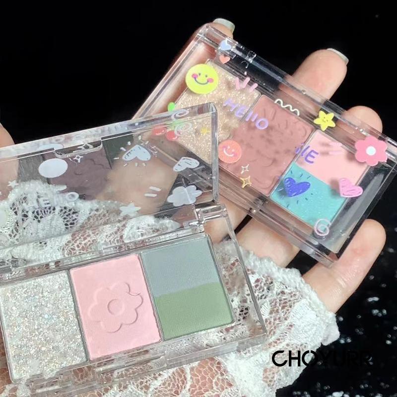 Fitur Tiga Warna, Portabel, Mudah Tercoreng, Mencerahkan, Mutiara, Tahan Air, Tahan Lama Warna Tahan Lama: Dapat bertahan sepanjang hari. Warna yang sangat berpigmen dan tahan lama, pertahankan riasan eyeshadow sempurna Anda untuk waktu yang lama. Shimmer: Palet eyeshadow matte, shimmer, glitter akan membawa Anda melewati setiap musim, memberi Anda setiap warna eyeshadow yang Anda butuhkan. Tekstur: Dengan bubuk tekstur halus, dapat dibaurkan dan dibuat tidak peduli digunakan sebagai warna transisi atau puncak. Kesempatan: Produk ini cocok untuk berbagai kesempatan, seperti santai, pesta, pernikahan. halloween.