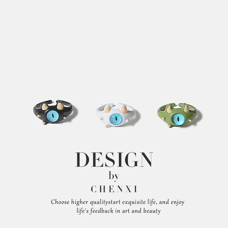 Detail COD✨Funny Black Little Monster Green Mata Eye Cincin Akrilik Lucu Kecil Korea Gaya Untuk Anak Perempuan-Yinmer