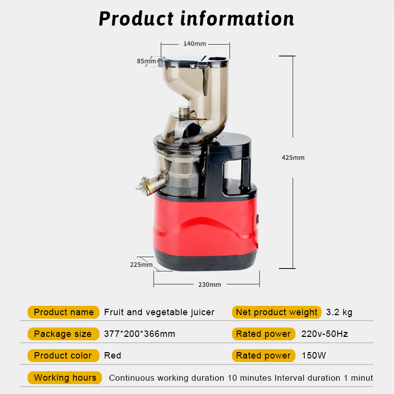 ⚡Voltage & Frequency: 110-220 V 50-60 Hz ; Watt: 150W Juicing Cup 750 ml Container Cup 900-1000 ml Inner Box : 420x220x330mm Bare weight: 3.5 Kg